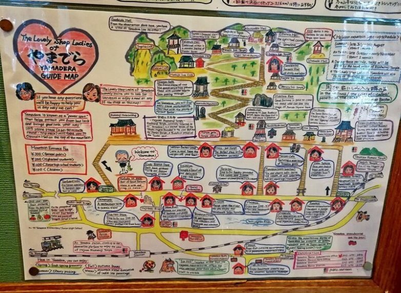 На самом деле храм называется Риссякудзи, то есть «Храм стоящих камней». Массивные скалы причудливой формы производят впечатление. Это одна из главных достопримечательностей в регионе Тохоку. Когда-то прочитала о храме в интернете и поставила флажок на карте: если окажусь в тех местах, надо посетить. И вот ехала из Сендая в Ямагату, он оказался прям по пути. Вышла на станции Ямадэра, оставила чемодан в камере хранения и полезла наверх.