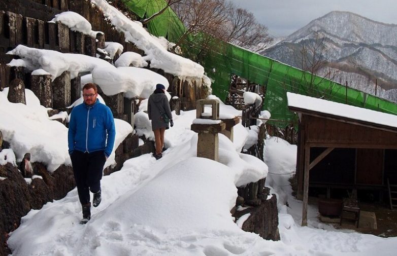 Периодически навстречу шли люди. Они уже побывали наверху и спускались обратно. В ужасе смотрела на них и понимала, что мне предстоит то же самое. Взбираться по обледенелым ступенькам проще, чем спускаться, зацепился за перила и подтянулся. Проблемных мест много, очисткой лестницы от снега и льда никто не заморачивается. А если учесть, что многие японцы почему-то ходят зимой в резиновых сапогах, это вообще становится опасным.