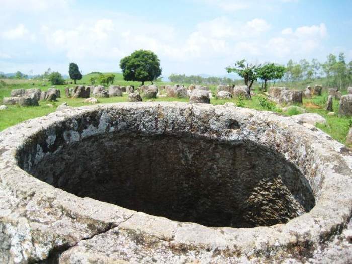Ландшафт лаосского плато Сианкхуанг усеян тысячами каменных кувшинов – полых мегалитов, которые расширяются у своего основания и имеют довольно крупные размеры. Где-то эти загадочные предметы стоят по одному, а где-то – группами, порой насчитывающими более сотни штук. Это место принято называть «Долина каменных кувшинов» или «Долина каменных банок», и оно до сих пор досконально не изучено.