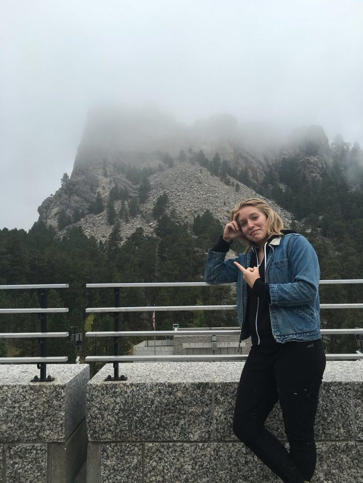 2. «После 9 часов езды на машине: вот фото, которое сделала наша мама у горы Рашмор»