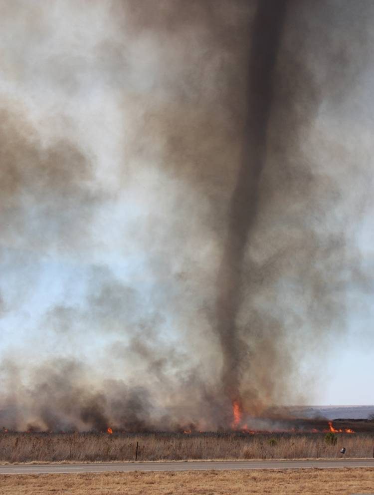 Достаточно необычно видеть огненный торнадо посреди кустарников на земле. Но иногда вихрь отделяется от пламени и становится независимым. Порой он достигает больше километра в высоту и двигается со скоростью более 160 км/ч. Это явление может продолжаться в течение более 15 минут. Лучше держаться от него подальше.