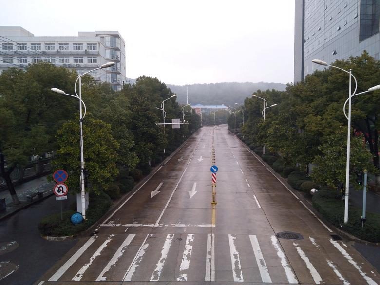 Вид на улицу после того, как правительство Ухани объявило о запрете на второстепенные транспортные средства в центре города, во второй день китайского лунного Нового года.