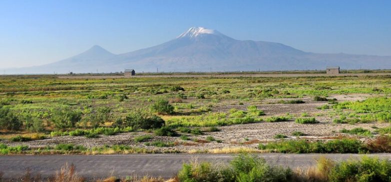 Ещё более впечатляющие виды открываются с дороги из Баязета в Игдир — здесь Большой Арарат круто обрывается к плоской равнине: