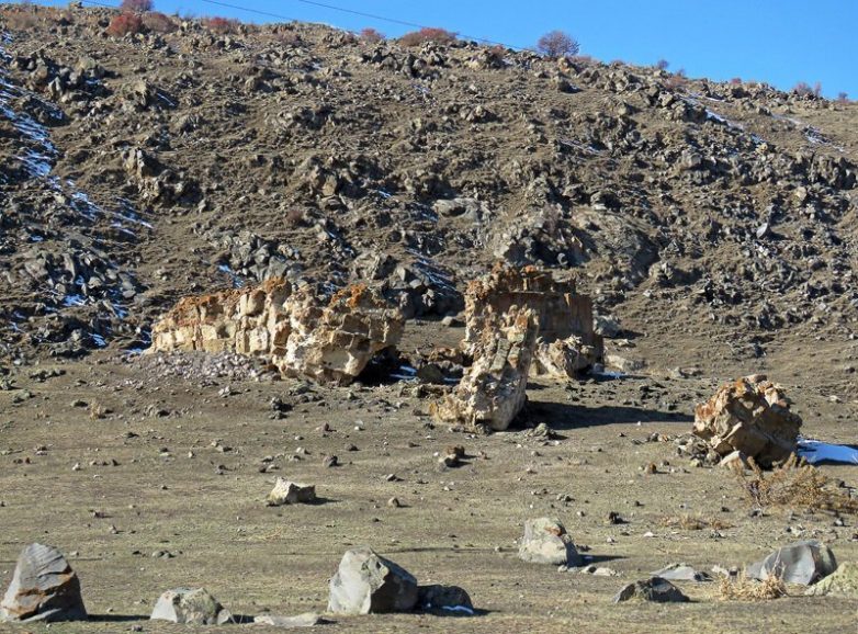 Порой образующие причудливые скульптуры, как где-нибудь на Курилах. Под этой лавой археологи находят древнюю оплавленную бронзу и обгоревшие кости, а последний раз Арарат извергался не так уж давно — 2 июня 1840 года: