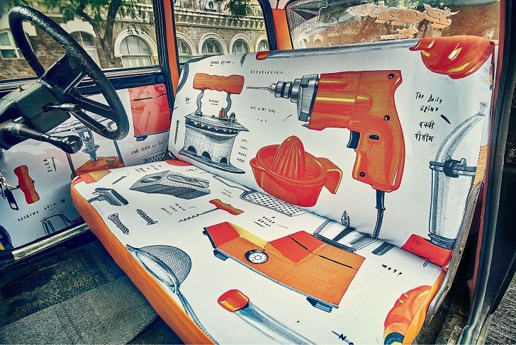 Компания Taxi Fabric привлекает к своей деятельности молодых индийских дизайнеров по ткани — выигрывают все: и таксисты, и компания, и дизайнеры, демонстрирующие свой талант.