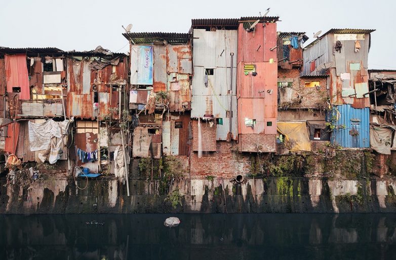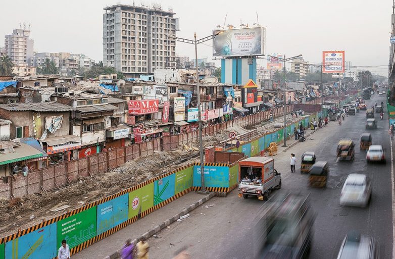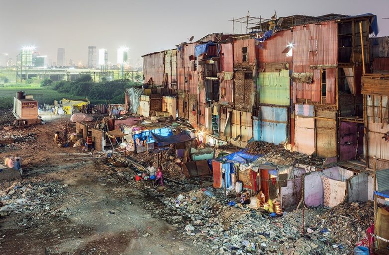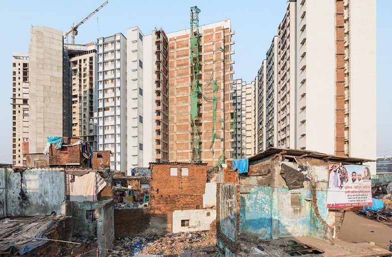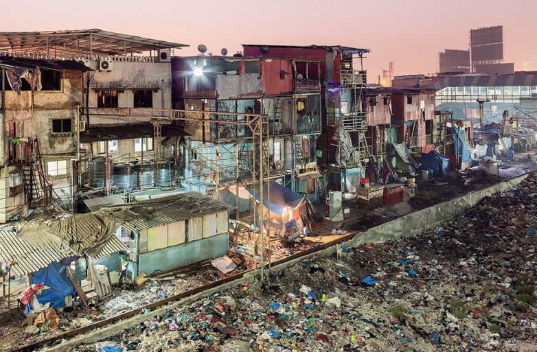 Один из них, район Дхарави, считается самым густонаселенным во всей Азии. Здесь на 2,5 км² ютится сразу миллион человек. Жители трущоб работают за доллар в день, а спят чаще всего просто на улицах. Здесь нет нормальных дорог и даже туалетов, а местные реки загрязнены отходами. Буквально за забором вырастают новостройки из стекла и бетона. Это удивительное архитектурное соседство запечатлел польский фотограф Мацей Лещинский (Maciej Leszczynski).