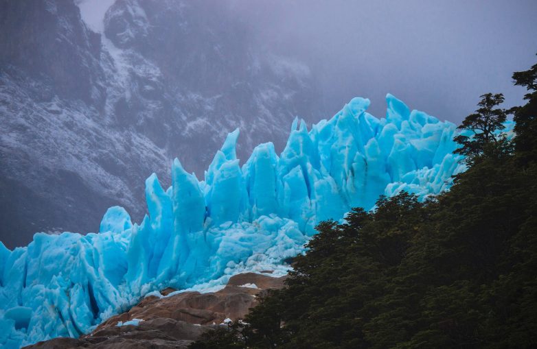 Ледник Серрано. Ледник расположился на северном склоне горы и путь к нему лежит по суше, через величественный тысячелетний лес (смотри выше), по берегу ледяного озера. (Фото Martin Bernetti):