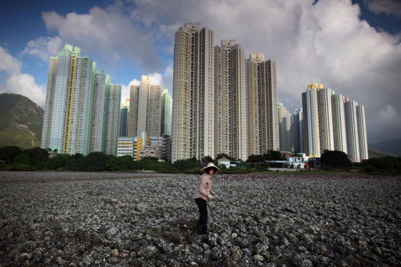 На берегу, рядом с жилыми кварталами, во время отлива на острове Лантау можно поискать моллюсков. (Фото Ed Jones):