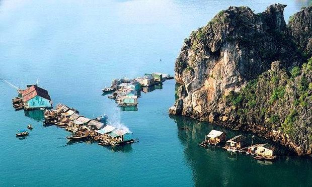 Невероятной красоты пейзажи. Домики на плотах. Кажется, что они стоят прямо в воде. И вокруг — утёсы бухты Ха Лонг. Школа тоже на воде — ученики приезжают туда на лодках. Чтобы всё увидеть, тоже надо будет нанять лодку.