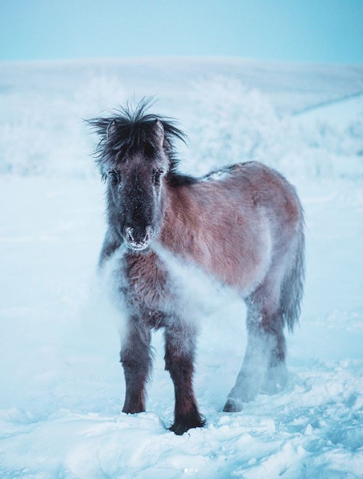 6. «Хотел фото, где из ноздрей жеребца вываливаются клубы пара. Лошади пугливые, мороз за −50 °С не дает возможности спокойно ждать. Но у меня получилось»