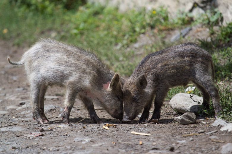 Свиньи больше похожи на диких кабанов и гуляют сами по себе: