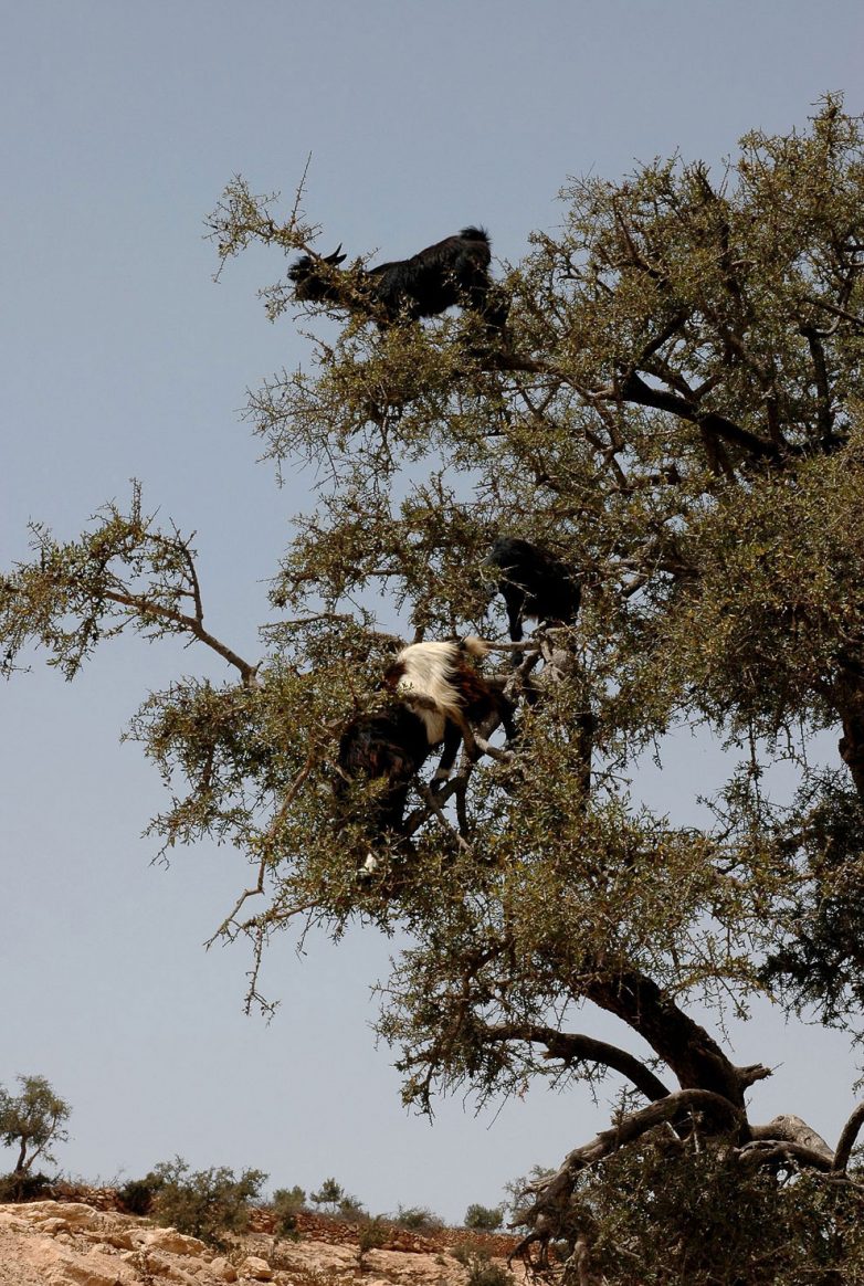 Внутри плодов дерева Арган находятся ценные орехи, которые не перевариваются в желудках этих животных. Козы их выплевывают, а пастухи подбирают и делают аргановое масло, которое используется в кулинарии и косметологии.