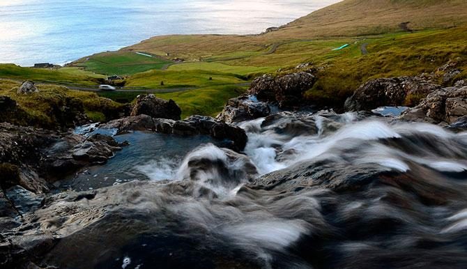 На Фарерских островах есть мелкие речушки, напоминающими горные ручьи; естественных водотоков практически нет, но достаточно много искусственных озёр и небольших болот. 13 октября 2012.