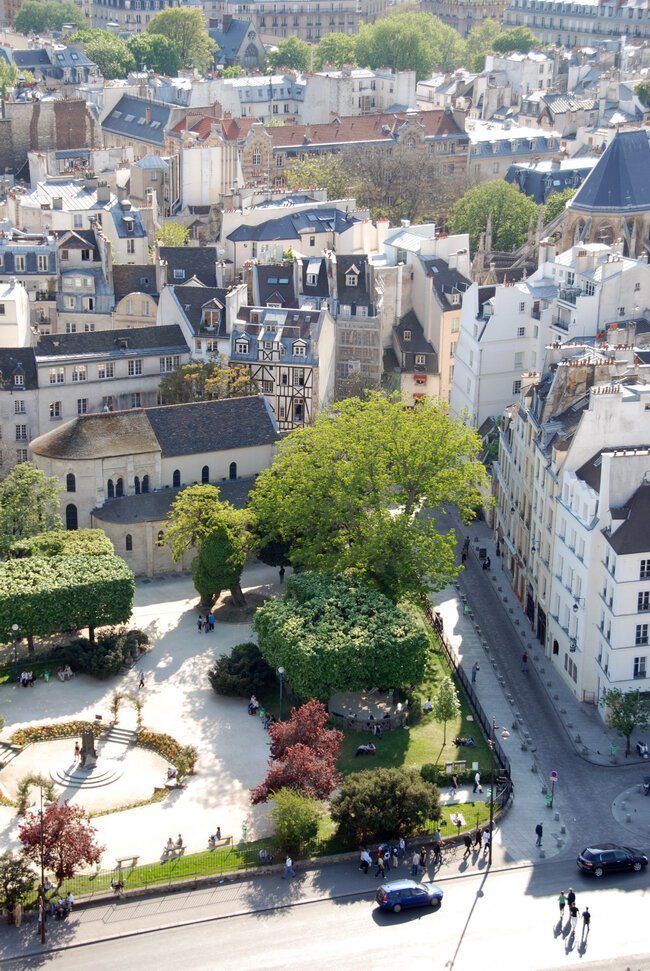 (… и да, снимок сделан в до-пожарное время, когда и шпиль, и крыша Нотр-Дама еще были целы)Улица Сен-Жюльен-ле-Повр — один из входов в Латинский квартал с набережной Сены. Справа от нее находится пешеходная зона Ла-Юшет, слева — церковь Св.Жюльена (XII век) и сквер, где растет 400-летняя акация — самое старое дерево Парижа.