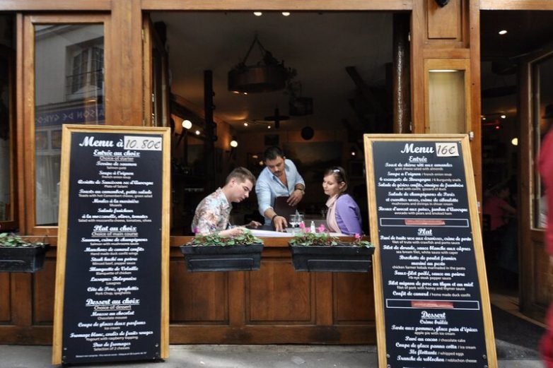 Обычно в Париже не принято зазывать публику в рестораны. Но только не в Латинском квартале — тут своя мода и хозяева или официанты стоят у входов, приглашая публику зайти именно к ним.
