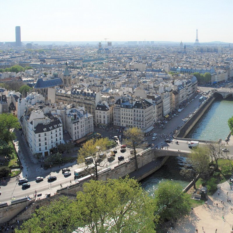 Справа на снимке ниже видна восточная часть Латинского квартала. За старой застройкой прорисовывается комплекс современных зданий Университета Пьера и Мари Кюри — самого крупного учебного заведения Франции.