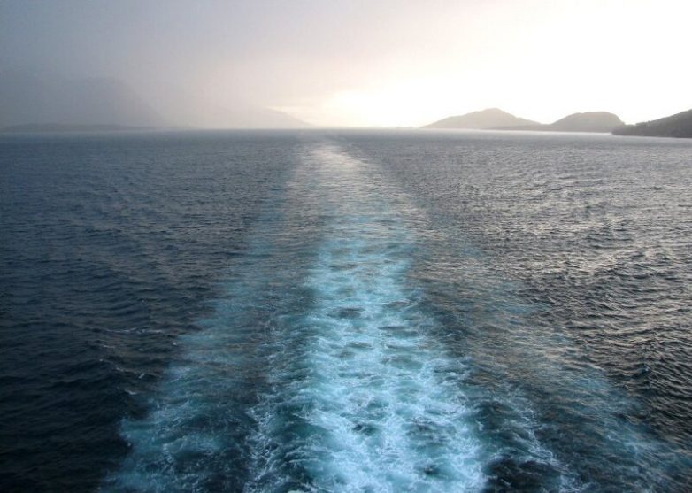 Миновав терминал, паром выходит на открытый морской участок, а мы между тем наслаждаемся жизнью на ночном солярии. Судно продолжает свой путь…
