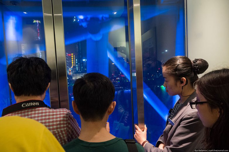 Ну и лифт. В отличие от других башен, он почти все время идет по улице, так что занимайте места у прозрачных дверей.