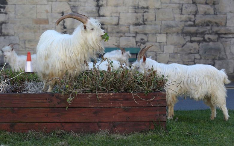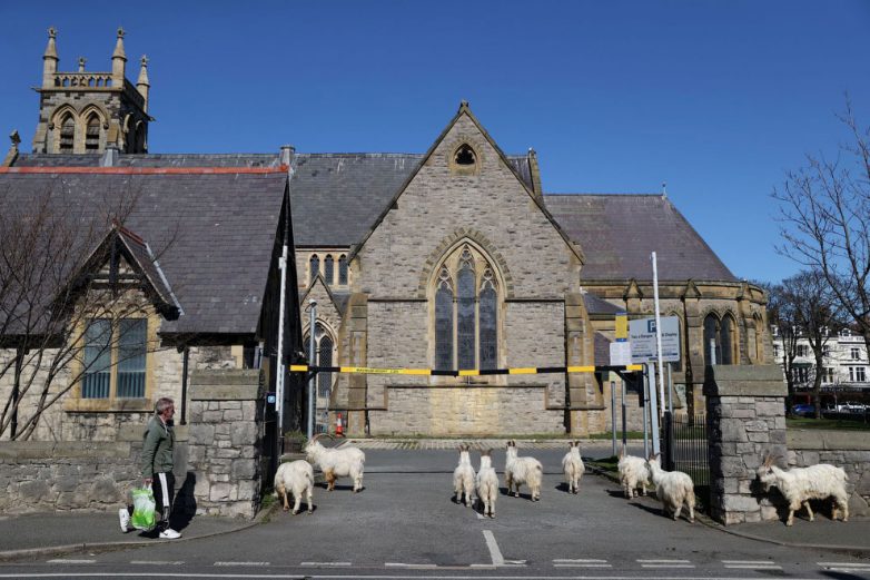 В уэльском городке Лландидно в Уэльсе, где в связи с коронавирусом опустели улицы, на передний план вышли козы. Небольшое стадо диких кашмирских коз, которые обычно бродят по скалистым склонам близлежащих гор, воспользовалось моментом, ворвались в город и стали объедать лужайки и живые изгороди.