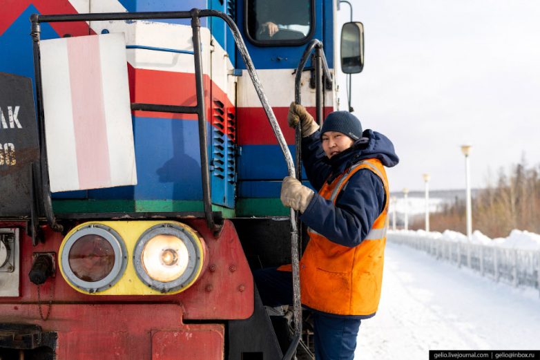 Машинист локомотива на станции Нижний Бестях. Путь отсюда до Нерюнгри на юге Якутии занимает больше 18 часов.