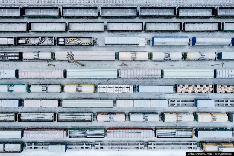 Контейнерный терминал разгружает железнодорожные платформы. Груз идёт как в Якутск, так и дальше в северные районы Республики Саха (Якутия).