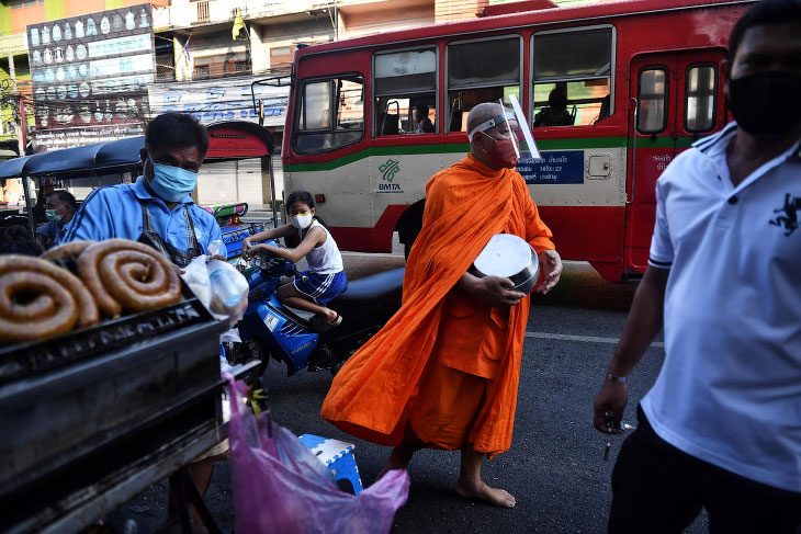 Буддийский монах в маске, 17 апреля 2020
