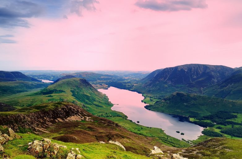 Закат над Уиндермиром, Озерный край, Англия. Местность в таком виде, как сейчас, сформировалась 15 000 лет назад в результате оледенения. На территории расположено четыре крупных озера и множество мелких
