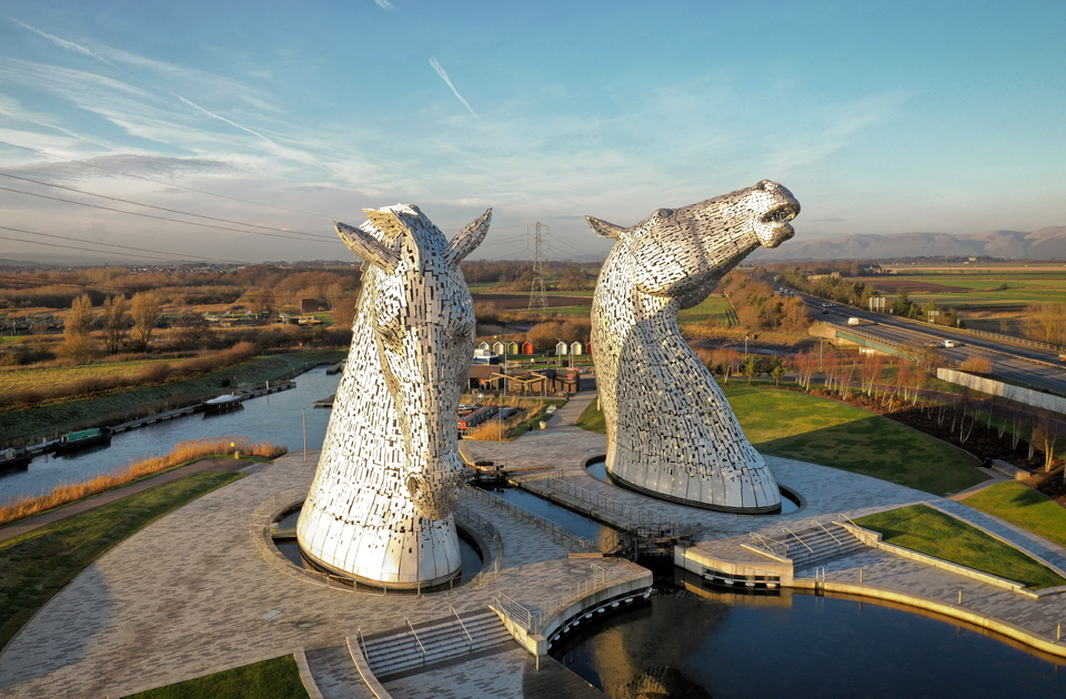 30-метровые скульптуры в форме головы лошади, изображающие келпи, — новый проект парковой зоны в Шотландии