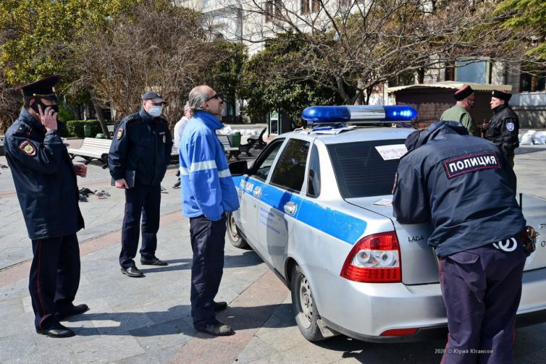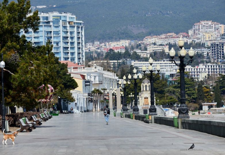 Такой Ялту я не видел никогда, да и, наверное, никто из вас её такой не видел. Пустынная набережная. Одинокие прохожие в защитных масках на улицах города. Казаки и полиция, составляющая протоколы. Голуби, выискивающие одиноких прохожих и стаей бегающие за ними, выпрашивая еду.