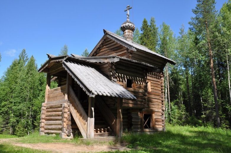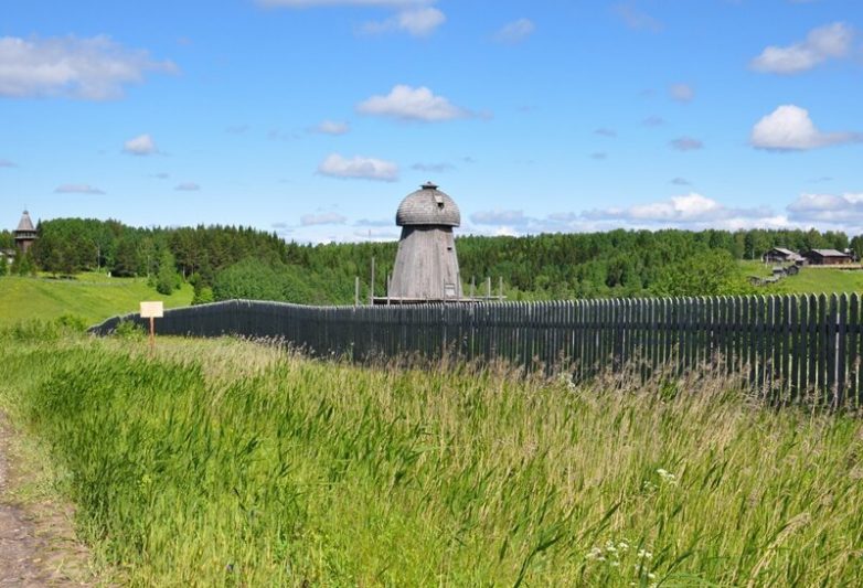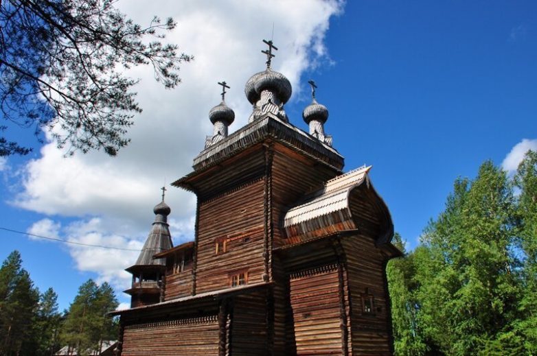 Георгиевская шатровая церковь датируется XVII веком и была перевезена в музей из села Вершино Верхнетоемского района.