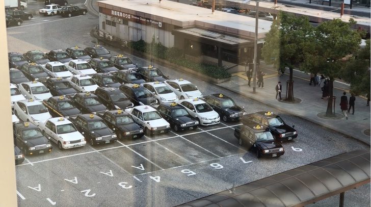 3. Таксисты в Японии выстраиваются в четкие линии, чтобы забирать пассажиров