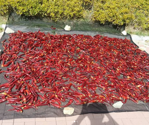 Острый перец сушат на солнце прямо на общественном тротуаре. И за его сохранность можно не беспокоиться