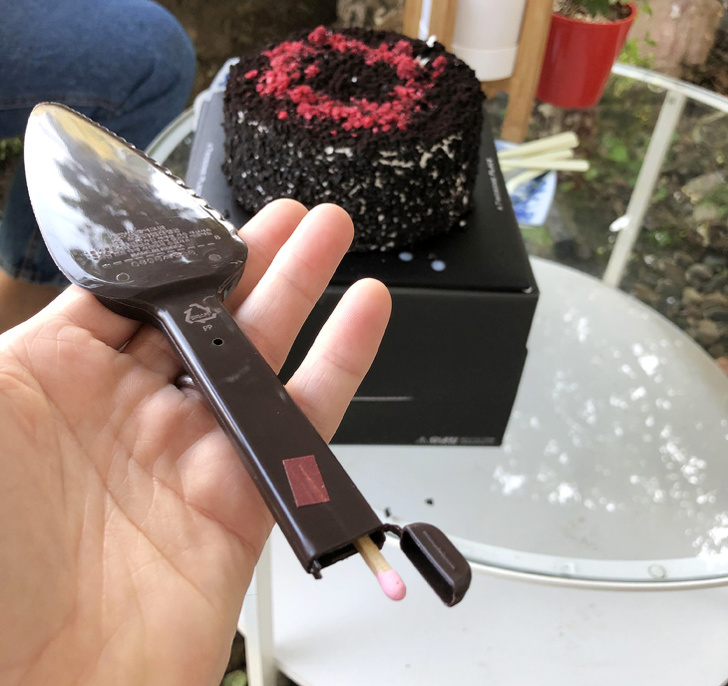 Торты обычно продаются с пластиковым ножом, в котором спрятаны свечки и спички