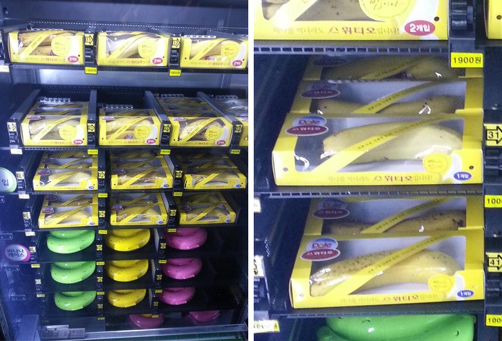 В Южной Корее в вендинговых автоматах продаются бананы, упакованные в индивидуальные коробки