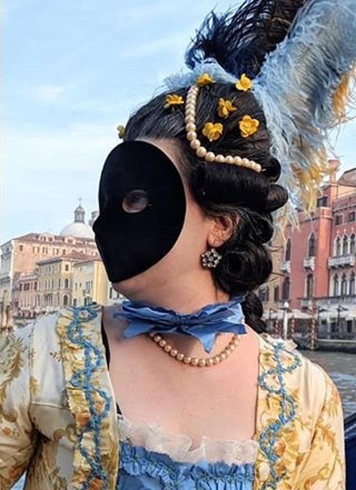 Дама. Изображает знатную венецианку Средневековья — нарядную, с красивой прической и множеством драгоценностей. Одна из самых вычурных масок.