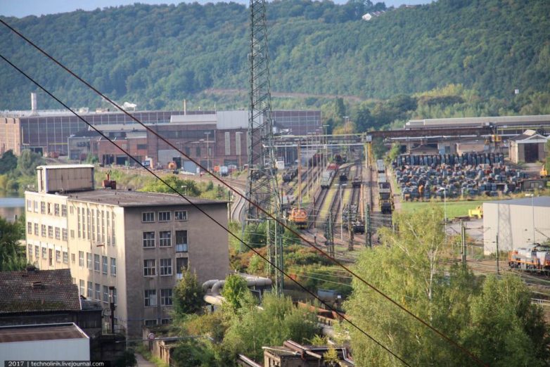 Конечная точка маршрута находится возле огромного железнодорожного хозяйства, обслуживающего металлургические и не только заводы Фелклингена.
