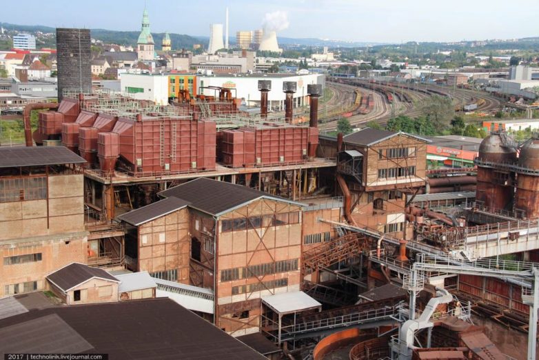 Территория музейного завода отсюда видна как на ладони, за ней на десятки километров просматривается индустриальная зона Фелклингена.