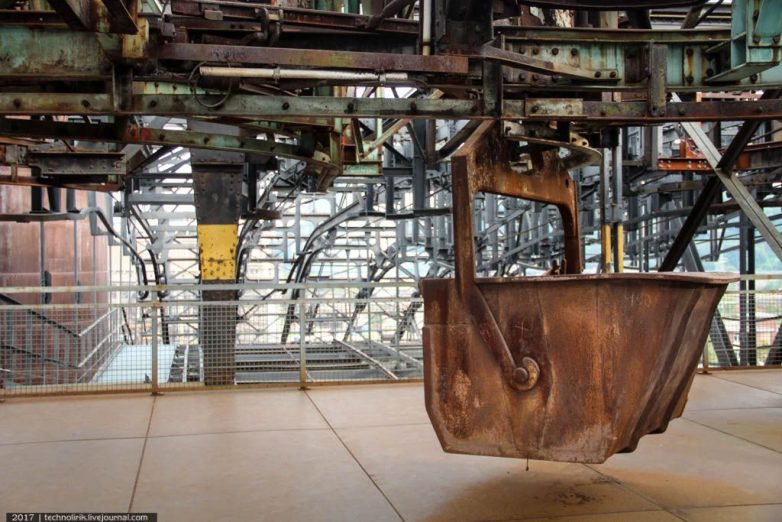Поднимаюсь на уровень загрузки доменных печей, расположенный на высоте 27 метров. На этот уровень вагонетки доставляются подъемником, в машинном зале которого я был десять минут назад.