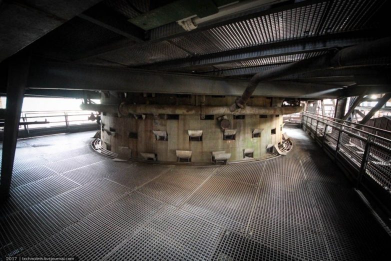 Вот я и подошел к верхушке доменной печи, которая на немецком называется Gicht (русский термин — колошник), а сама эта платформа, по которой проходит подвесная дорога, снабжающая все шесть доменных печей железнорудным сырьем и коксом, имеет название Gichtbühne (колошниковая платформа).