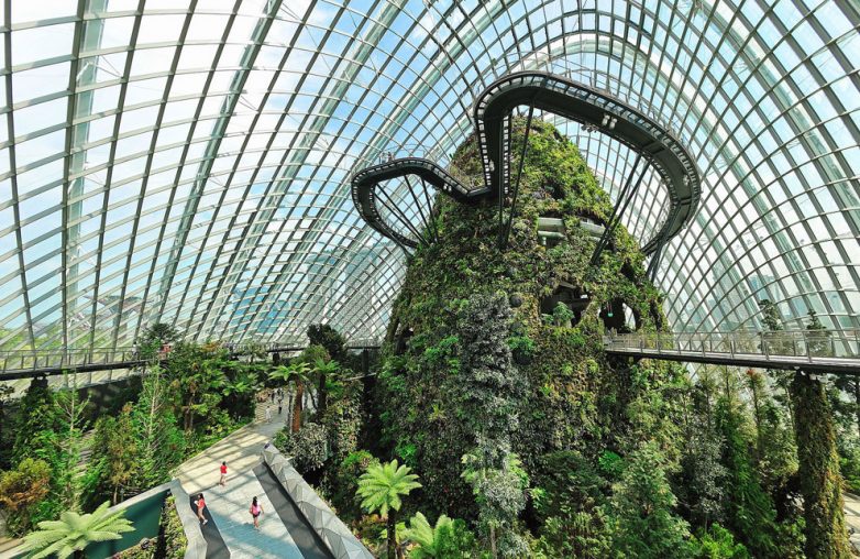 Оранжерея Flower Dome защищена от экваториального солнца Сингапура 3 300 стеклянными панелями и занимает площадь в 1.2 гектара.