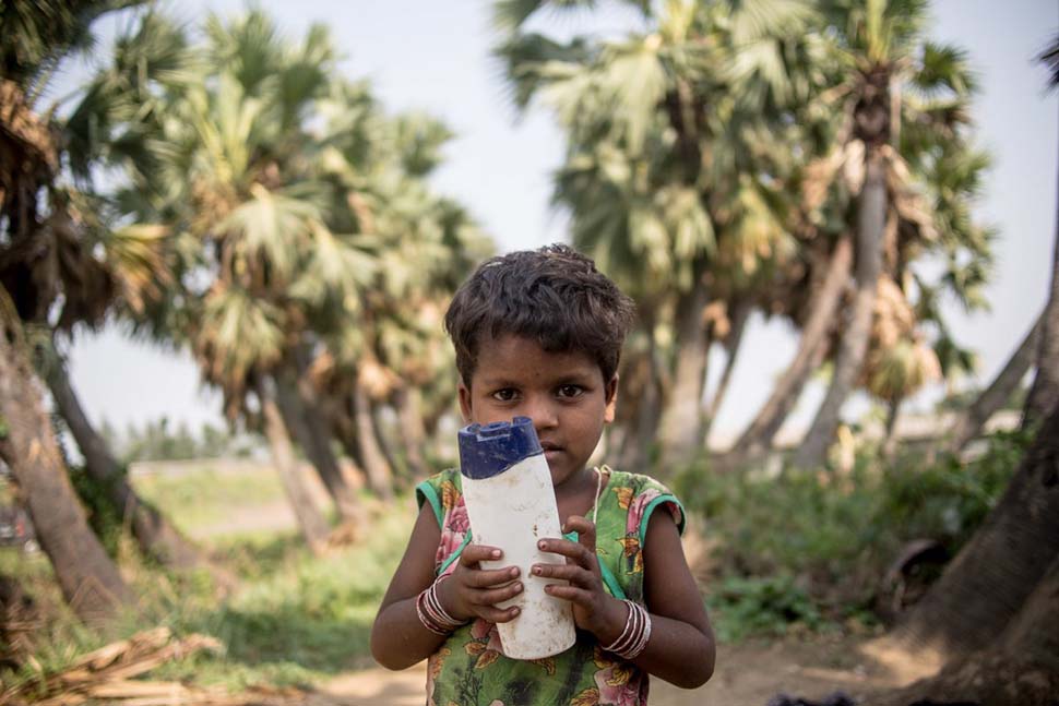Индия, семья с доходом 29 долларов на взрослого в месяц. Любимая игрушка — пластиковая бутылка.