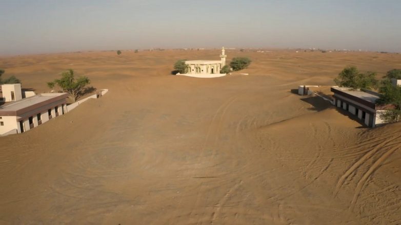 Британский фотограф Джейд Бримфилд (Jade Brimfield) сняла жуткие кадры и видео с дрона города-призрака Аль Мадам, который находится в 37 милях от Дубая. Пустое поселение состоит только из нескольких домов, а также мечети. Здания рушатся под палящим солнцем пустыни и погребаются кучами песка.