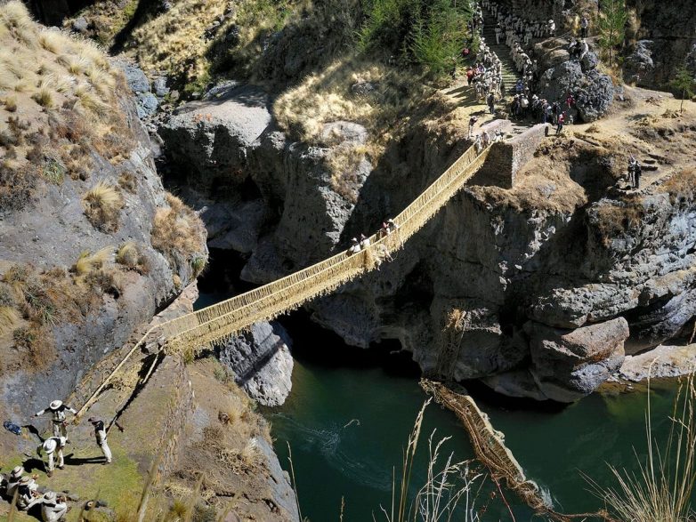 Инки придумали систему дорог и мостов ручной работы со стеблями и растениями, переплетенными вдоль Анд, которые сумели остаться в живых с течением времени. Несмотря на то, что прибытие испанцев привело к тому, что многие мосты были заброшены, мост Кешуачака, примерно в 100 километрах к югу от Куско, можно увидеть так же, как и 500 лет назад. Если вы осмелитесь, то можете прямо сейчас пройти 36 метров в длину, и посмотреть на реку свирепых вод с высоты около 70 метров, как это делали ее создатели несколько столетий назад.