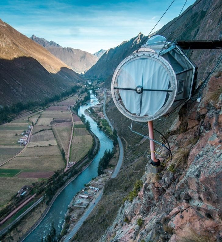 Капсула Million Star Hotel подвешена на высоте почти 400 м на склоне над долиной в Перу!