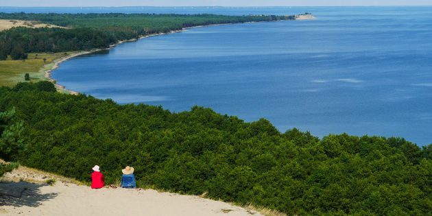 Помимо потрясающе красивого лесного массива, Куршская коса может похвастаться замечательными пляжами: вас встретят белый песок, чистота и отсутствие людей. Купаться можно по обе стороны косы, но стоит взять на заметку, что вода отличается по температуре: в заливе она пресная, поэтому прогревается быстрее, а вот Балтийское море достаточно прохладное. Плавать в нём комфортнее всего в июле — сентябре.