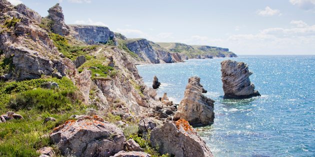 Самая западная точка Крыма, расположенная в экологически чистом регионе полуострова. Сюда едут, чтобы полюбоваться отвесными скалами и насладиться на удивление прозрачной морской водой.