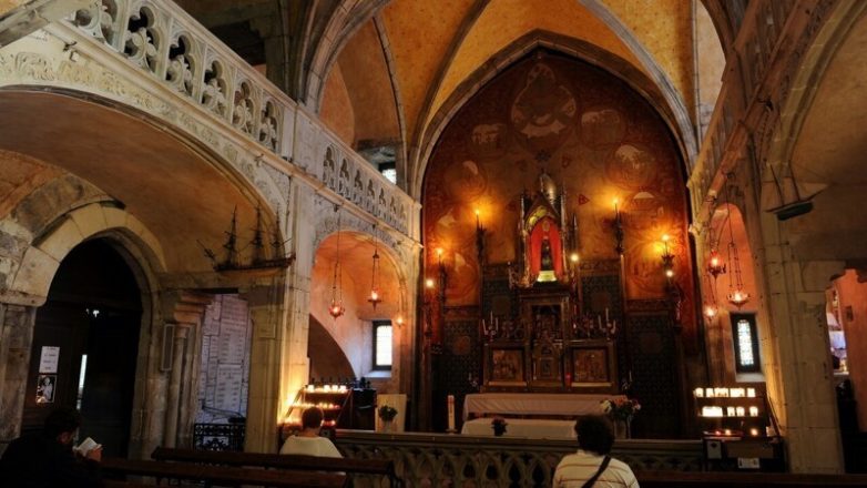 Речь идет о соборе Шапель-Нотр-Дам, выстроенном здесь в XII-XVI веках. Собор появился не случайно – в 1166 году в Рокамадуре обнаружили гробницу с мощами. Нетленное тело было выкопано в санктуарии Девы Марии перед входом в чудесную часовню. Останки святого Амадура извлекли из земли и представили паломникам. Мощи были уничтожены в годы религиозных войн во Франции и в наше время существуют только фрагменты кости, выставленные в крипте святого Амадура.