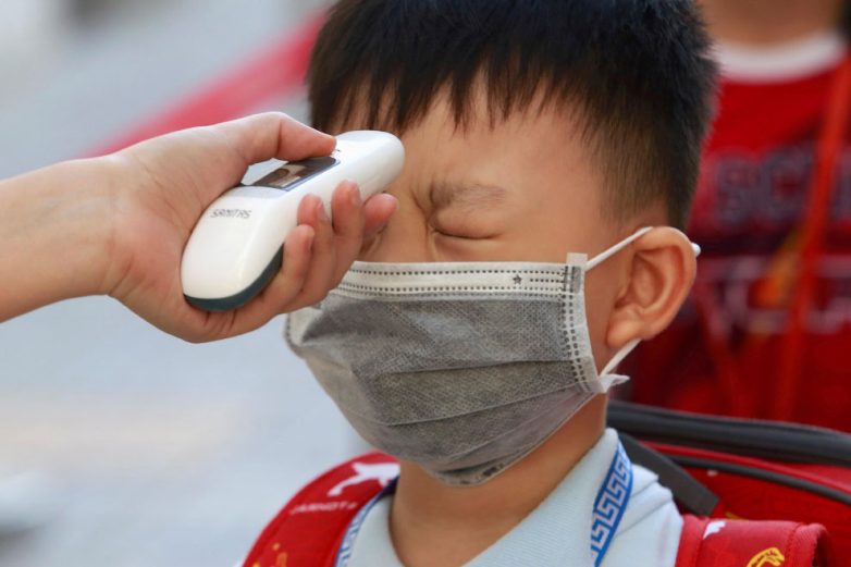Проверка температуры ученика начальной школы. (Фото Yen Duong):