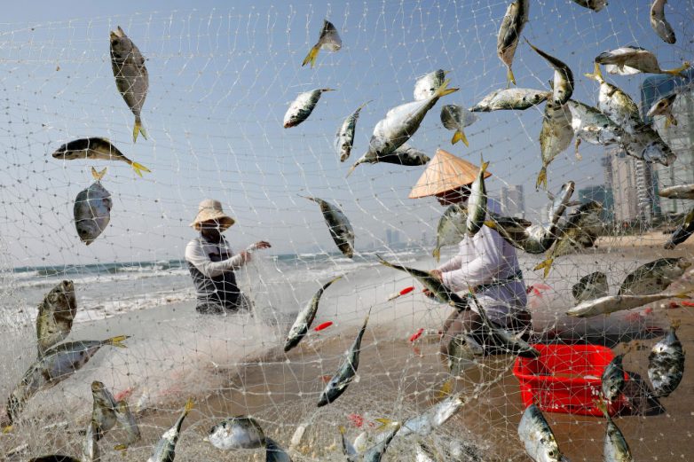 Вьетнамские рыбаки расставляют свои гигантские сети. (Фото Nguyen Sanh Quoc Huy):
