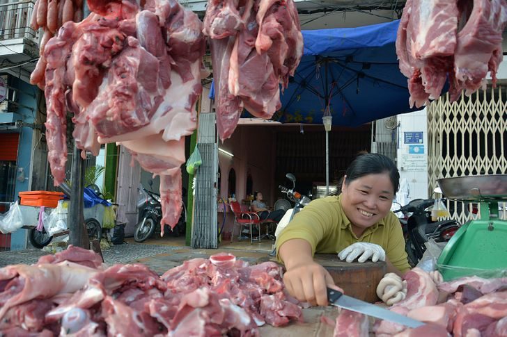 В столице Камбоджи на местном рынке рядом с фруктами и овощами вполне может стоять стул, на котором кхмерский парикмахер будет стричь своих клиенток. А по узким проходам между столами с продуктами в это время будут сновать мотоциклисты, словно здесь проезжая часть. Холодильников здесь в принципе нет, жара +40 °C. Чтобы мясо не тухло на прилавке, его просто поливают водой из бутылки.